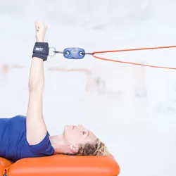 - 2 accessoires de fermeture à boucle pour la fixation sur le membre souhaité et sur une table de physiothérapie, sur des espaliers ou sur un système de poulies.