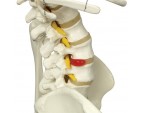 Tous les mouvements du crâne peuvent être montrés grâce aux articulations de la tête. Les nerfs spinaux et les artères vertébrales sortants sont également représentés sur ce squelette, de même qu'une hernie discale dorsolatérale entre la 3ème et la 4ème lombaire.